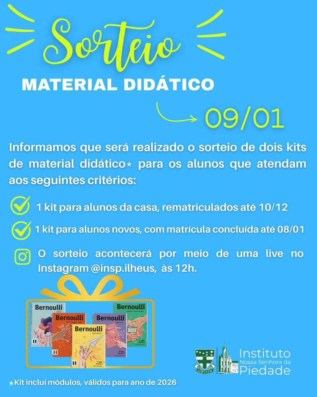Já pensou iniciar 2026 ganhando o sorteio de um Kit de material didático? Fique atento ao nosso sorteio !