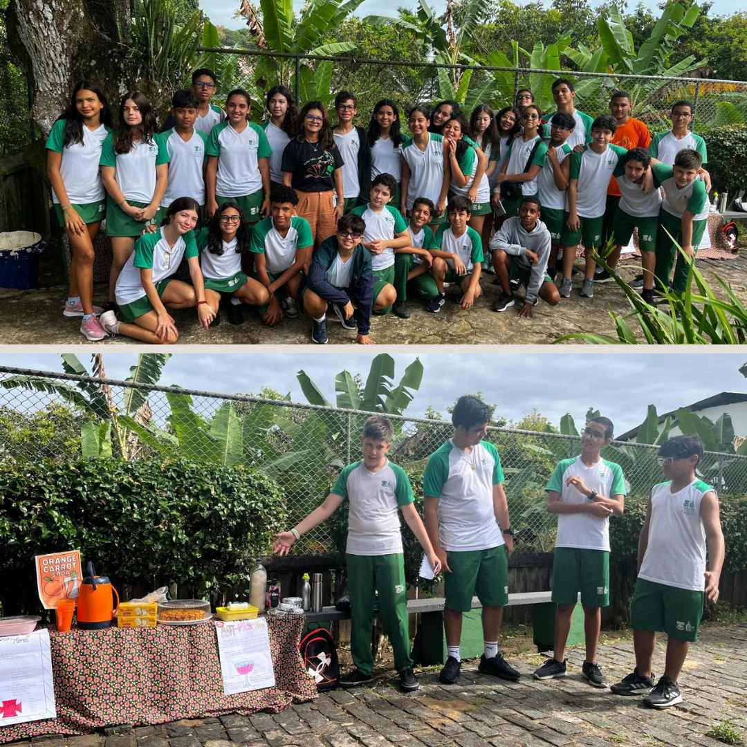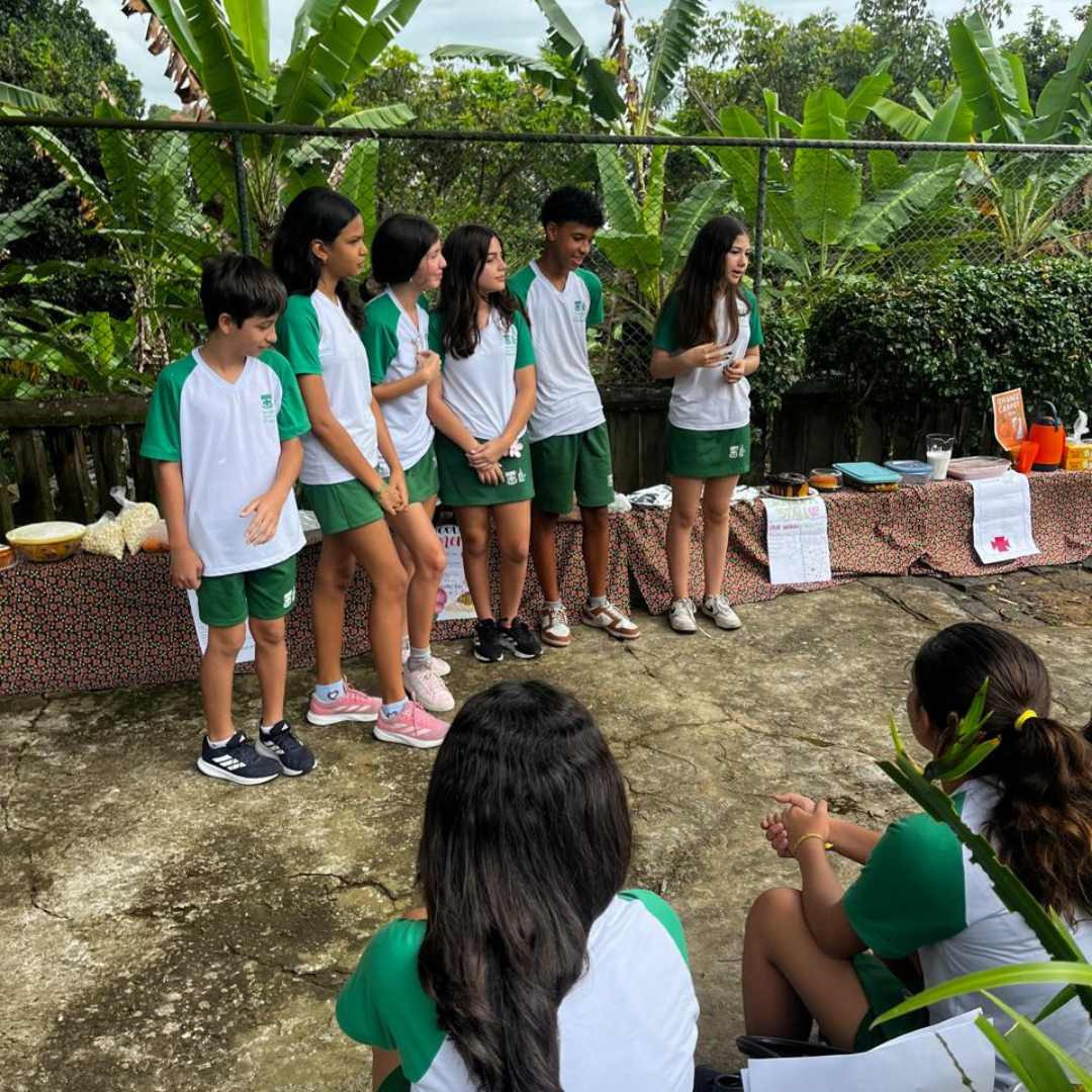 Durante as aulas de Inglês da professora Meriely, os estudantes dos 7º anos conversaram sobre a importância da alimentação saudável. O principal objetivo foi compreender a importância de uma boa nutrição e refletir sobre como nossas escolhas diárias influenciam a saúde e o bem-estar. Cada grupo ficou responsável por apresentar um menu saudável em Inglês com um nome criativo. Como culminância, realizamos um lanche coletivo saudável, no qual cada grupo apresentou seu cardápio especial, conectando assim o estudo da língua com um tema do cotidiano.