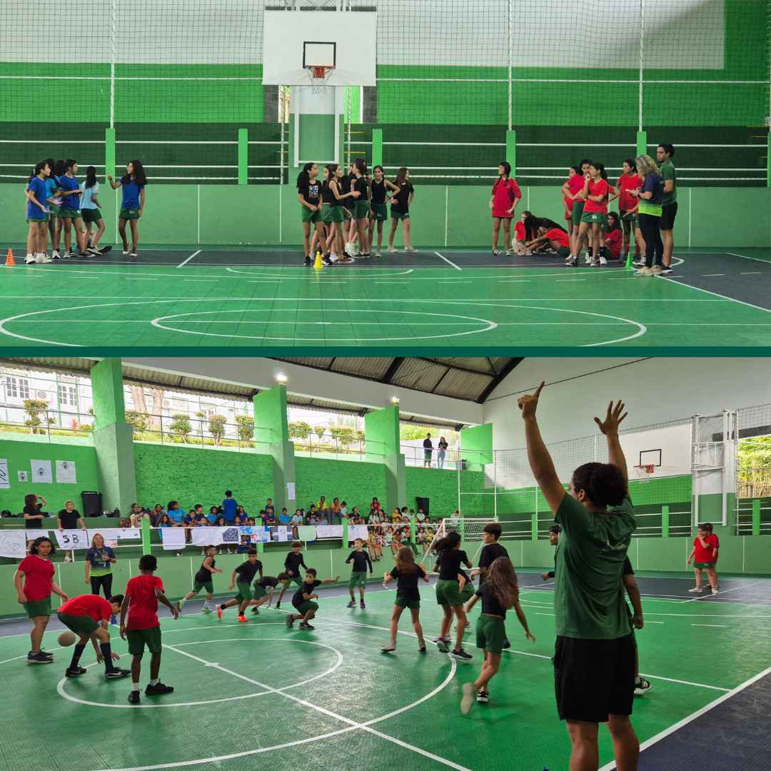 Ao longo do evento, os estudantes participaram de disputas de vôlei, basquete, handebol, futsal, corrida e baleado, colocando em prática não apenas suas habilidades, mas também valores essenciais como trabalho em equipe, perseverança e solidariedade. Cada jogo foi marcado por muita garra, energia e torcida, refletindo a força da nossa comunidade escolar.