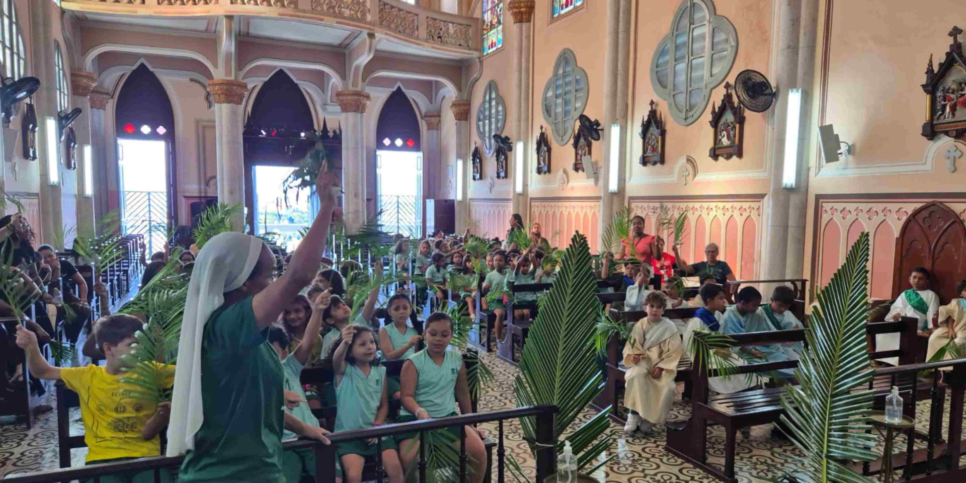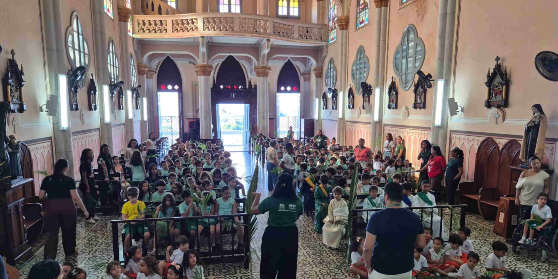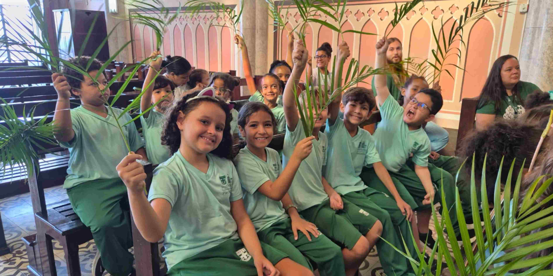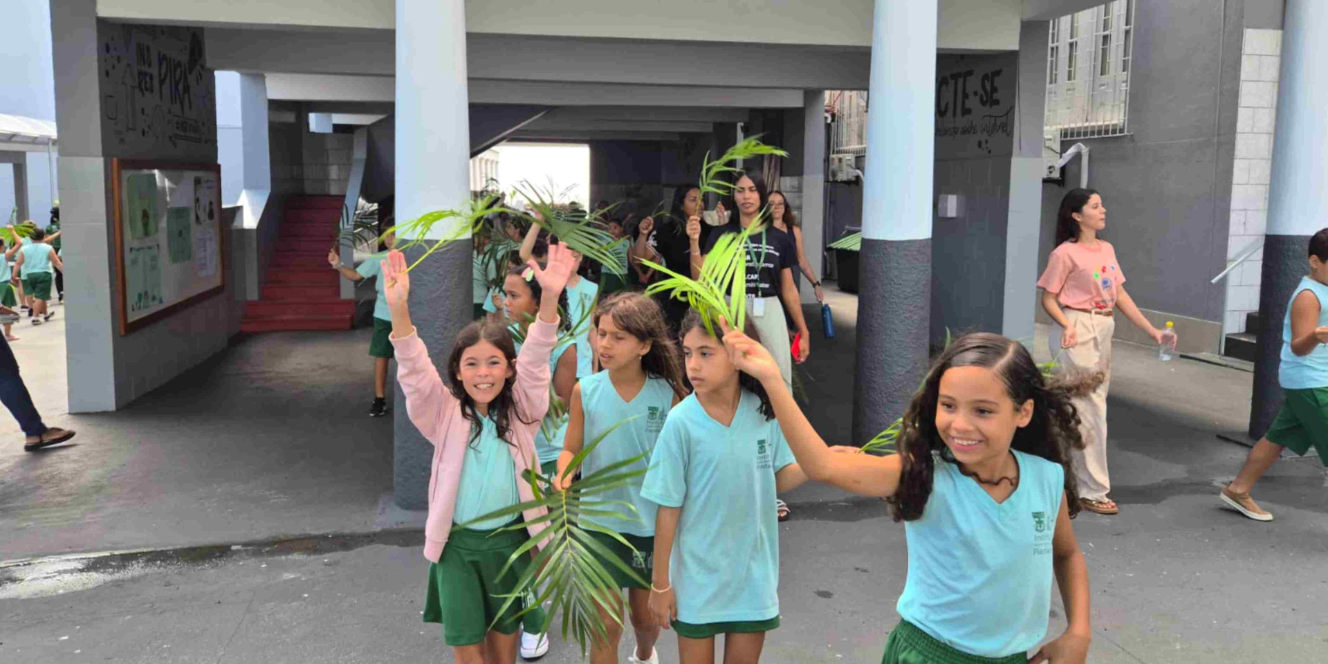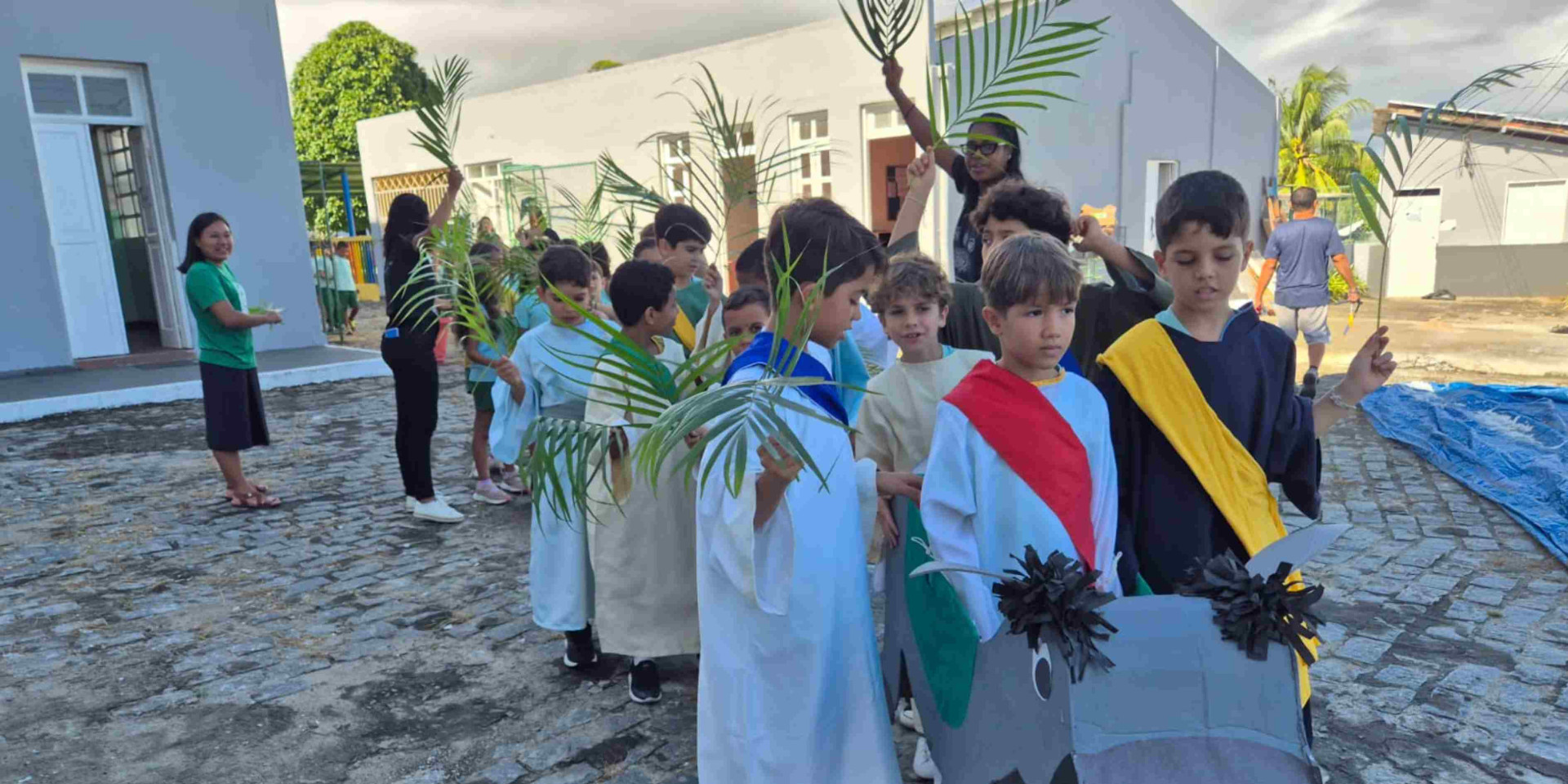 A atividade representou a chegada de Jesus em Jerusalém, permitindo que as crianças compreendessem, de forma leve e significativa, o verdadeiro sentido dessa celebração. O percurso teve início na igreja e seguiu pela área administrativa, espaço externo do Infantil e Praça do Sapoti, em uma caminhada marcada por cantos, alegria e ramos nas mãos, simbolizando fé e acolhimento.